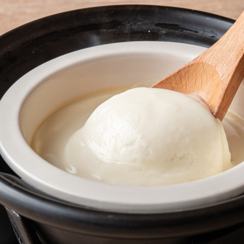 しっかりとこだわり豆乳を味わえる逸品。黒蜜をかけることで濃厚な味わいに