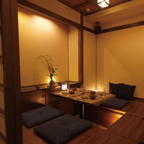 【4名様から】一番に人気の個室!早めのご予約を・・・仕切りを利用して、半個室としてのご利用も可能。床の間付のゆったりとした空間をご用意。女子会や誕生日会、ご友人との飲み会にお勧めの完全個室!掘り炬燵式で♪手作り豆腐やしゃぶしゃぶを味わいながら楽しいひと時をお過ごし下さい。(三宮 居酒屋 和食 個室)